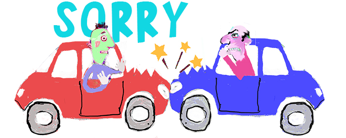 "I am really really sorry, so there is no need to get out of your car and come over to my car waving your fists like that."