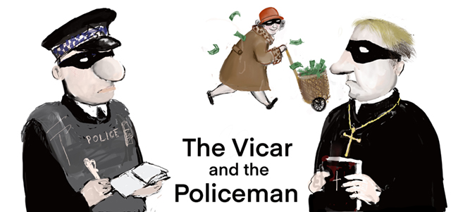 The “policeman” leant forward and took off the vicar’s glasses and dog collar, then his wig.