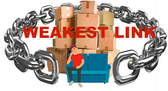 ‘In the van, too. Luckily, the sofa was left right at the back. But I can’t go on like this. What’s the hold-up in the chain and when can I complete?’