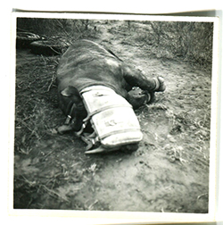 Well, I have just come back from staying with my father-in-law in Knysna, way down the coast along from Cape Town.’ He looked as if I should give him more than that. So I did. ‘He spent years in Kenya as a game warden. He specialised in rhinos and elephants. He even devised a way of anaesthetising rhinos using a dart shot from a crossbow…’ Something in the man’s eyes flickered. ‘What was his name?’ Nick Carter.’ I said. ‘He wrote a book about it, didn’t he?’ he said. ‘Yes. It was called ‘The Arm’d Rhinoceros…’ ‘I’ve got a copy at home,’ he said. ‘Signed copy, I think.’