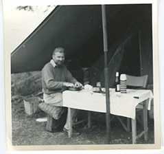 Then he re-enlisted in the Army, went back to Africa, left to go into wildlife in Kenya for years and years, went on to Mozambique, and finally ended up looking after a dwindling herd of elephants native to Knysna Forest, before retiring. About the only record of his Kenya days, apart from his book, is a TV programme about him made by Survival films back in 1960, called Bolt from the Blue, which is very occasionally shown again on TV when they’re desperate for something to show. We watched his copy of it when we were out there. It was Nick all right, with the same trim version of Hemingway’s beard, which he still wears, though a lot more active and younger on screen. But it wasn’t his voice we heard voicing his thoughts. Nick’s voice on film was Australian. Nick’s voice in real life is very British.