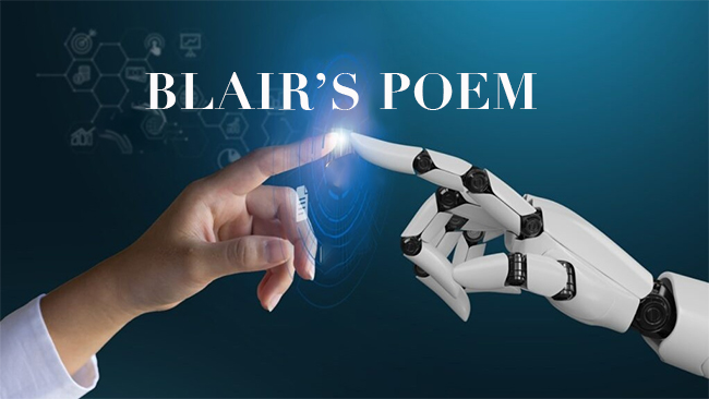 “I know that!” I told it curtly. “That’s why I chose you to do a Blair pastiche. Now get on with it!”