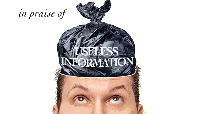 Where I disagree with the American is in classifying all this as useless knowledge. Using it in crosswords, Monty Python, even daily conversation, makes it immediately worthwhile. I am all for useless information: it is colourful, irrelevant, interesting and appealing. You can’t have enough of it. What you can have too much of - and we have far too much of it – is useful information.