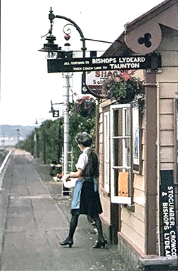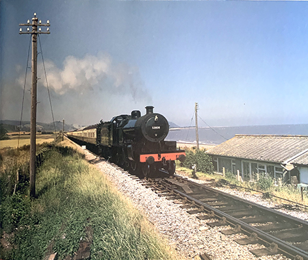 Bishops Lydeard and Minehead seem worlds apart. The latter lives by and for the sea, whereas when you set out from Bishops Lydeard and plunge straight into a wood, you get no feeling of the sea being anywhere within a hundred miles. In fact you start climbing, which is an odd way to get to the seaside, and for the first four miles it’s uphill all the way, through woods and fields and, above all, hilly valleys, the kind of country which we have been trained to think of as typical GWR branch line country, for the very good reason that it was. On a sunny day it is hard to think of anything more beautiful, with the high line of the Quantocks occasionally visible over to the right, the buxom rise and fall of the Devonian landscape all around and over there on the left – according to the official guide – “the small village of Combe Florey, home of the author Auberon Waugh, whose large house can be clearly seen on the left hand side between the two bridges.”