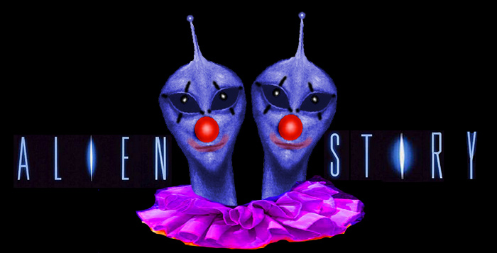 Once upon a time in London there was a children's party entertainer called Squidgy. He called himself Squidgy the clown from outer space. Squidgy had three arms, blue skin, two heads, and antennae. He told jokes and did tricks. With his three arms he could juggle very well and his best trick,which all the children loved, was to take off his left-hand head, with which he had just been talking, and juggle it in the air. Just before he plugged it back in his neck again, he would make it talk in the air and say: ‘Put me back! Put me back!’ They loved that.
